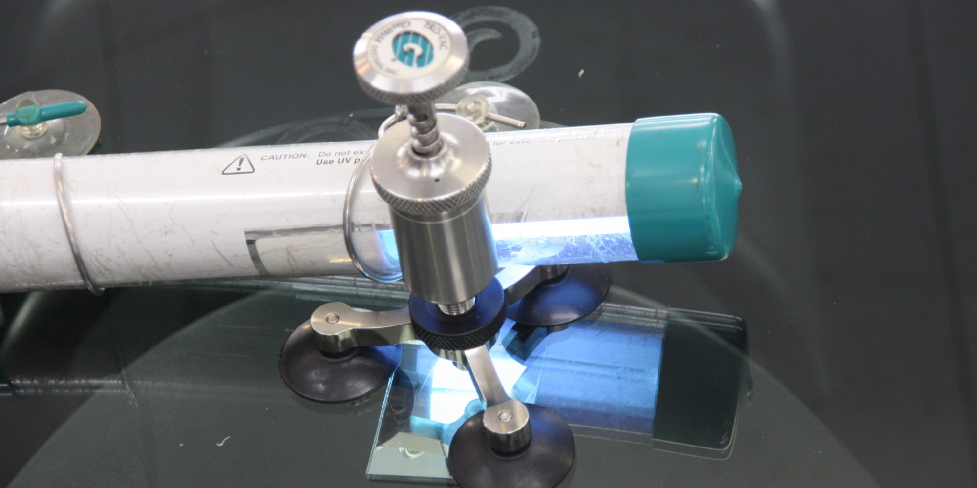 当社で使用するインジェクターシステムは、高い真空力で衝撃点の空気を短時間で取り除き、レジン(樹脂液)をヒビの先端まで完全充填します。高出力な紫外線照射が可能なUVランプを使用し、一気に硬化させるので修理後のひけや変色を防止します。